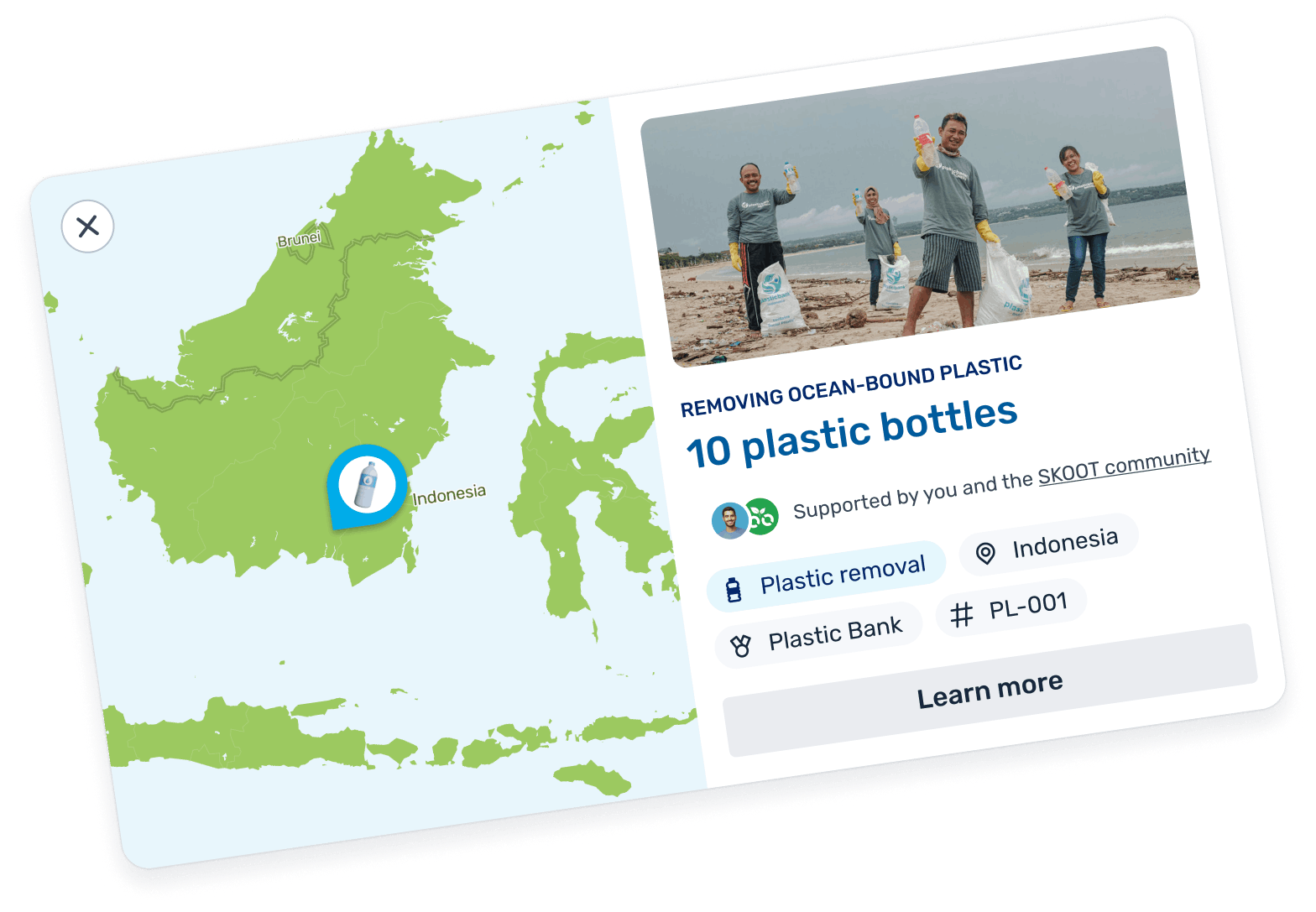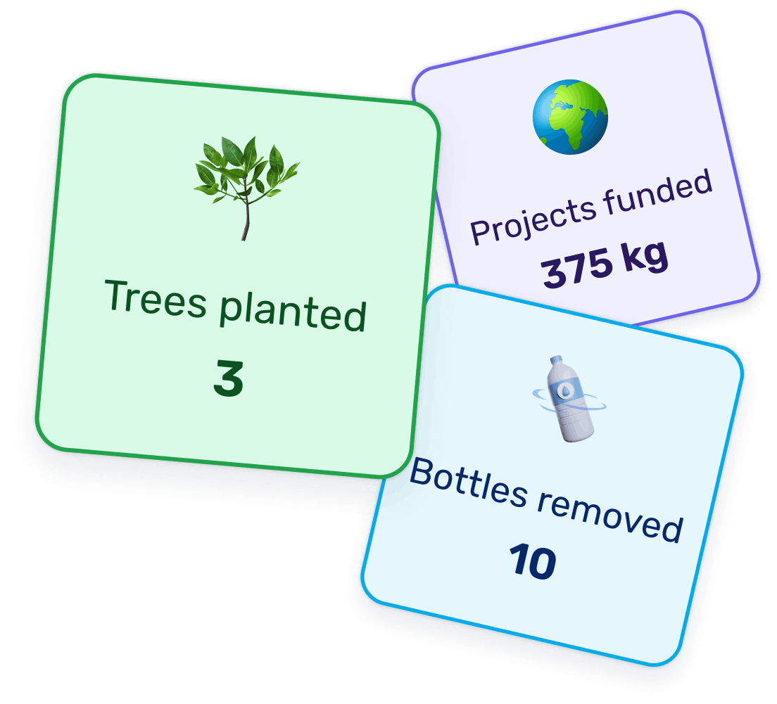 Your Impact Profile is your public webpage where you can see all the actions you've made so far. Every tree, bottle and kg of CO2 countered is accounted for. View an example of an Impact Profile.